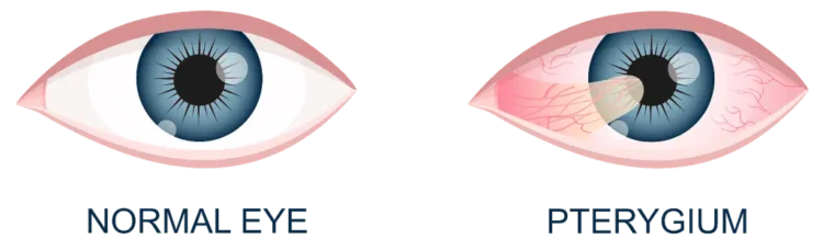 Pterygium—commonly referred to as surfer’s eye—is a non-cancerous growth of fibrous tissue that develops on the white part of the eye (conjunctiva) and can extend onto the cornea. It’s primarily caused by chronic exposure to UV rays, wind, dust, and environmental irritants.